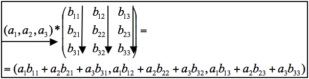 Benutzen Sie für die Multiplikation eines Vektors mit einer Matrix die Rechenregel (für andere Zeilen- und Spaltenzahlen entsprechend anpassen):