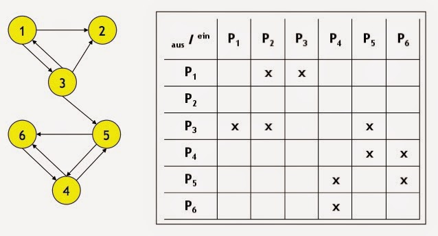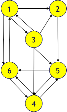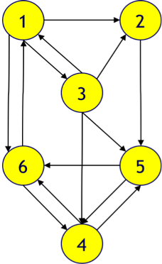 Berechnen Sie den PageRank für die Knoten der nachstehend abgebildeten Netzstrukturen als Vektor, indem Sie eine Iteration in 5 Schritten für die Matrix H der Übergangswahrscheinlichkeiten durchführen, wie es in der Vorlesung dargestellt wurde: