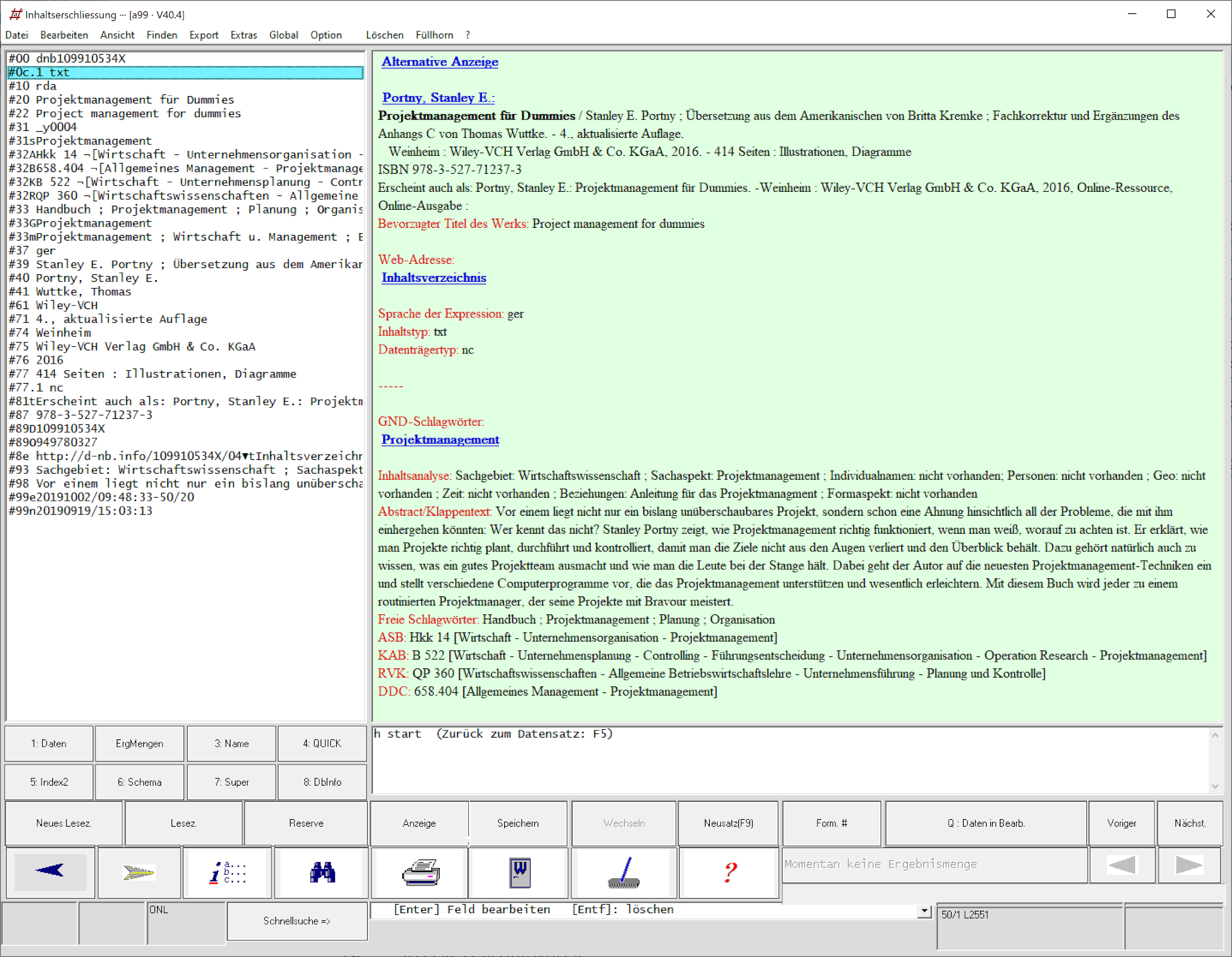 - Erstellen formaler Dokumentbeschreibungen für unterschiedliche Medienarten mit einer bibliografischen Software (allegro-c);